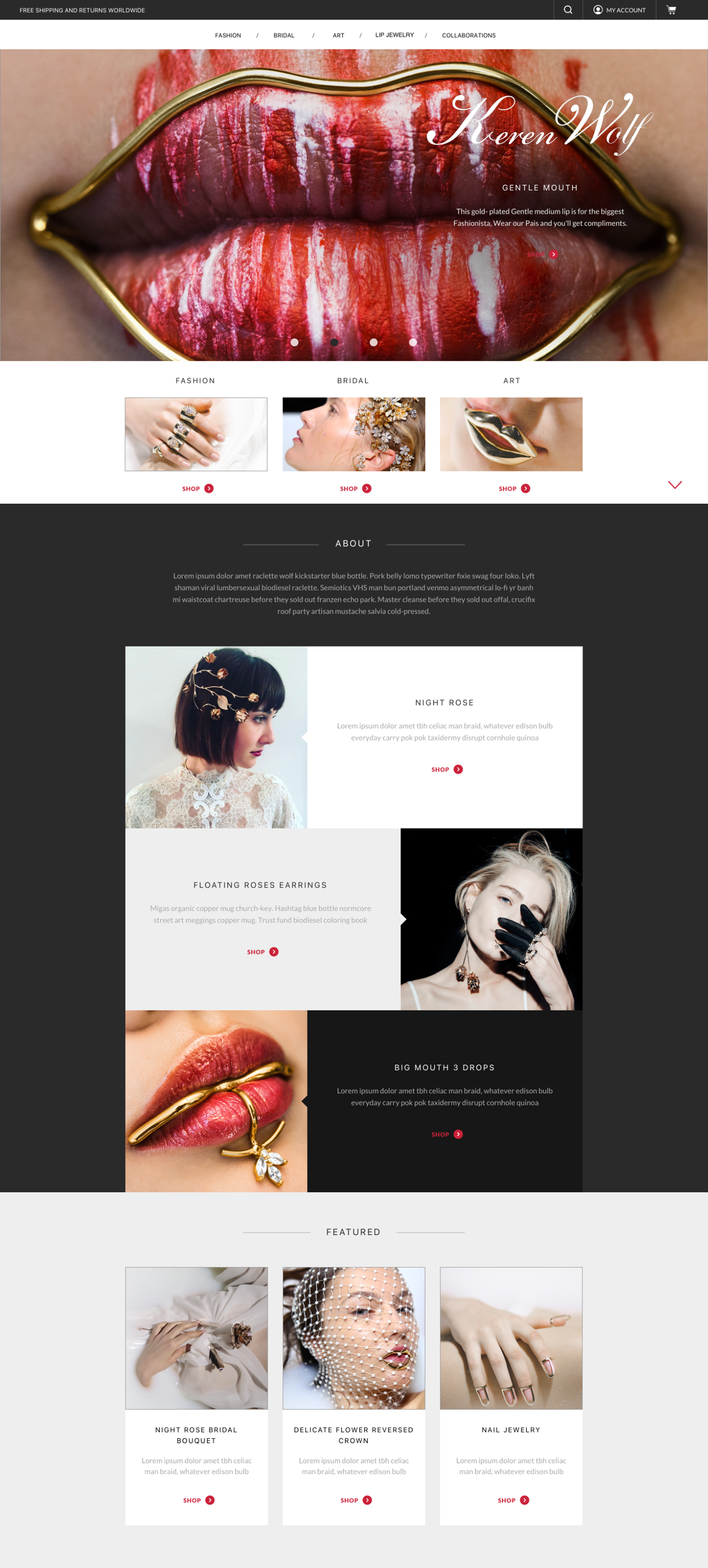 Keren Wolf’s couture accessories embody a rebellious, audacious femininity. The site translates that spirit into an editorial shopping experience: large, cinematic visuals, crisp type, and a flow that moves from inspiration to purchase.