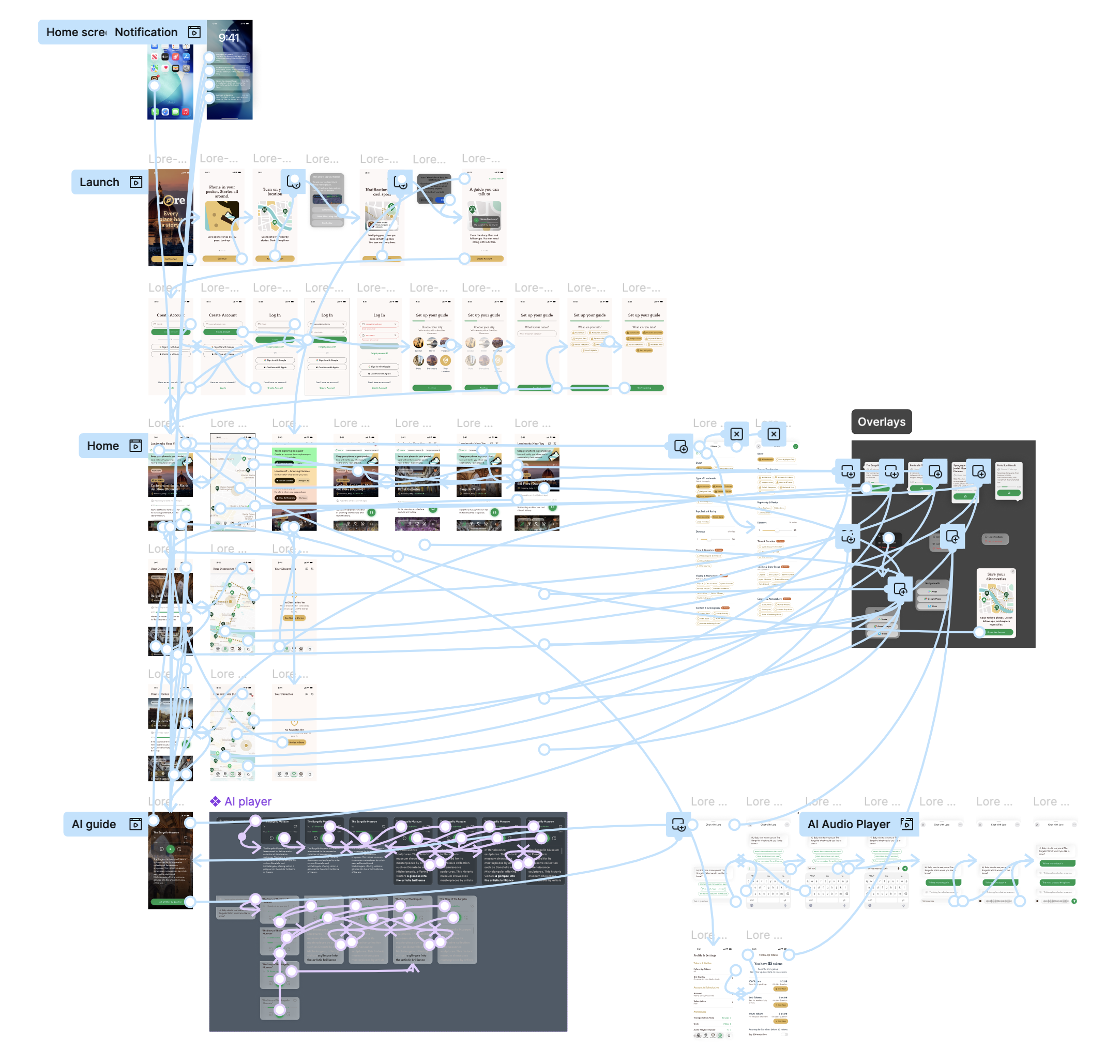 My role: Product, UX, and UI for the MVP: scoped the product, mapped flows, designed notification strategy and POI cards, built the story player and conversational UI, created the content template, and prototyped the journey; defined the brand and look & feel (color system, typography, iconography, motion guidelines).